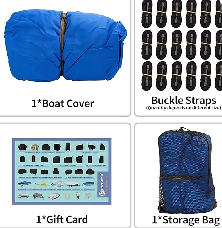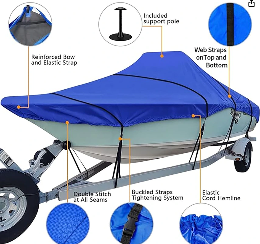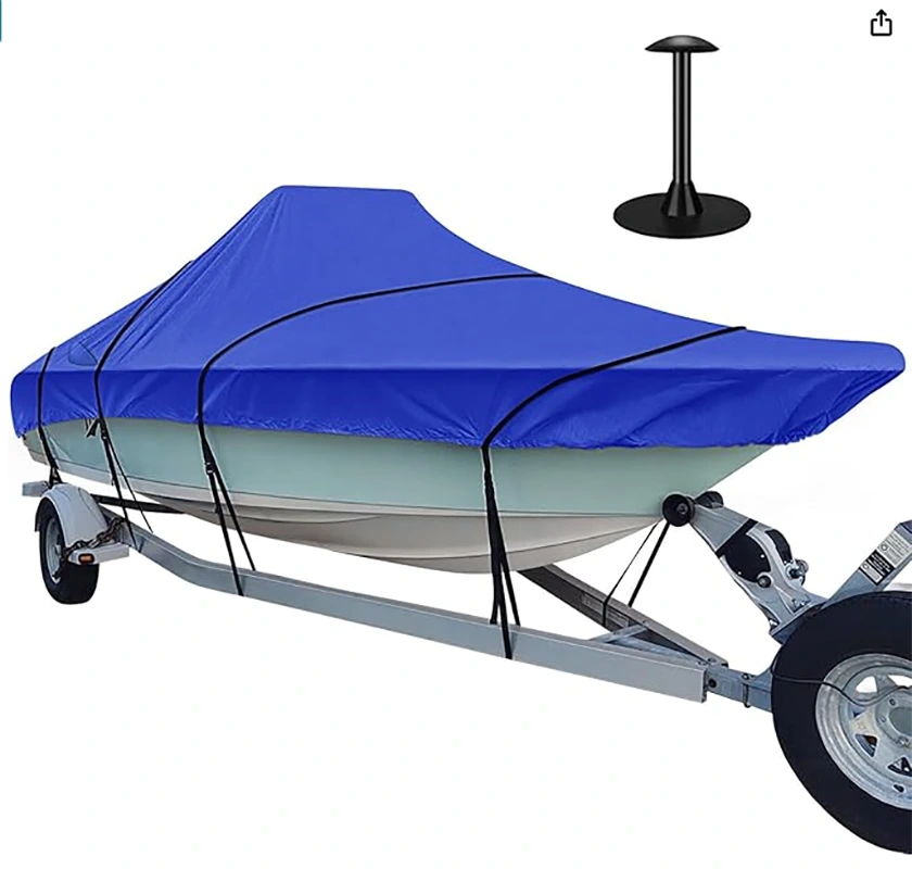 Πλάτος δοκού Αδιάβροχο κάλυμμα σκάφους Κάλυμμα γιοτ, κάλυμμα για ρυμουλκούμενο σκάφος, κάλυμμα βαρέως τύπου σκάφους 600D Ταιριάζει σε σκάφος κεντρικής κονσόλας V-Hull μήκους 20 πόδια-22 πόδια και πλάτος δοκού έως 116 ίντσες, Ύψος παρμπρίζ έως 30 ίντσες, Περιλαμβάνεται στύλος καλύμματος σκάφους.
