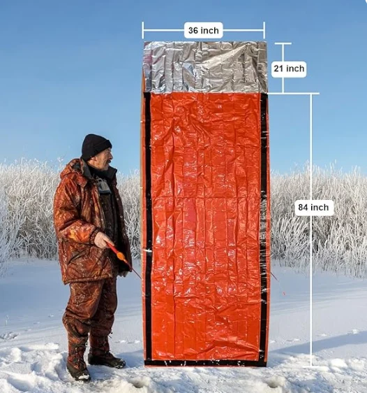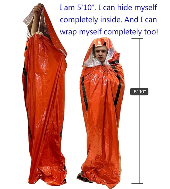 Ο υπνόσακος επιβίωσης έκτακτης ανάγκης μπορεί να αυξήσει τις πιθανότητές σας επιβίωσης σε όλες τις καιρικές συνθήκες, όλες τις εποχές και όλες τις περιστάσεις. Είναι κατασκευασμένο από ανθεκτικό μονωτικό υλικό Mylar που σχεδιάστηκε από τη NASA για εξερεύνηση του διαστήματος. Διατηρεί / αντανακλά πίσω το 90% της θερμότητας του σώματος. Είναι επαναχρησιμοποιήσιμο, αδιάβροχο και αδιάβροχο.