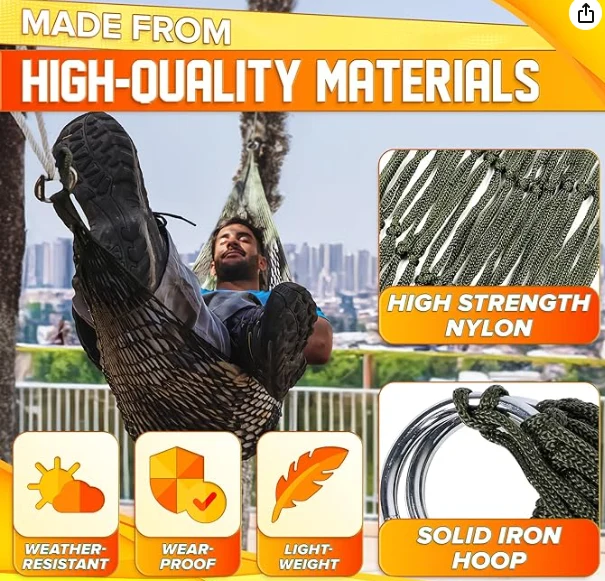 Πεζοπορία κρεμασμένη αιώρα, αυτή η νάιλον string Hammock έχει υψηλή χωρητικότητα φορτίου. Αυτά τα νάιλον σχοινί είναι ιδανικά για εσωτερική και εξωτερική λόγω υψηλής ανθεκτικότητας και ανθεκτικών στη φθορά