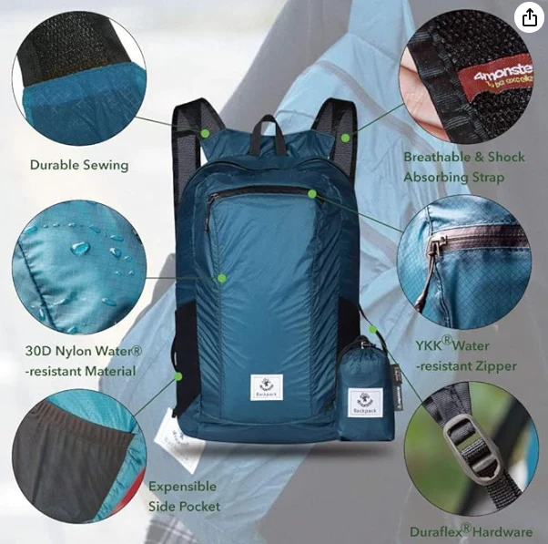 Αδιάβροχο ελαφρύ σακίδιο πεζοπορίας, πτυσσόμενο σακίδιο παρέχει αρκετό χώρο για υπαίθρια ταξίδια, κάμπινγκ, πεζοπορία, ημερήσιες εκδρομές και ψώνια. Έρχεται με μια κύρια τσέπη φερμουάρ, μια μπροστινή τσέπη φερμουάρ και δύο πλευρικές τσέπες. 30 ημέρες χωρίς παρενοχλήσεις / δωρεάν ανταλλαγή, εγγύηση 12 μηνών.